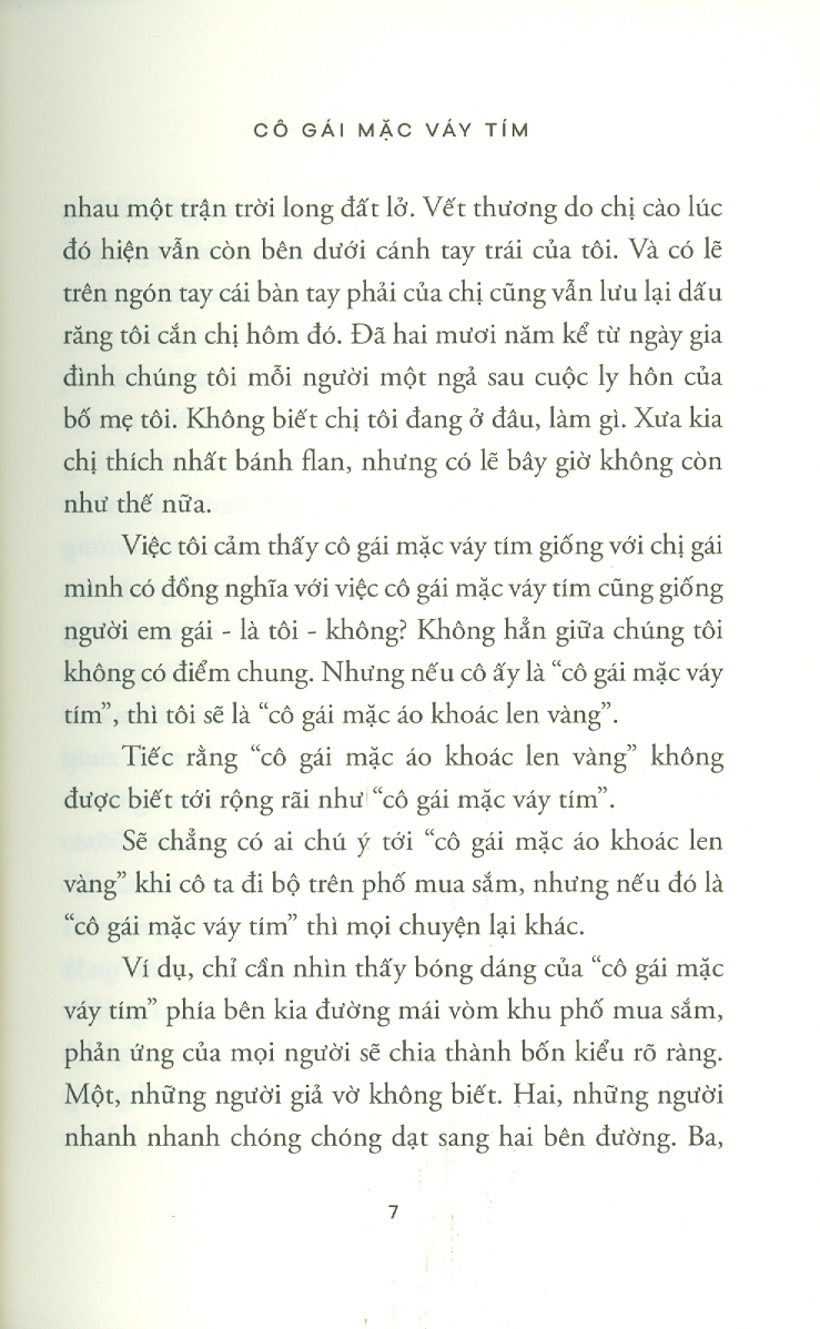 Một sự ám ảnh mập mờ giữa điên rồ và lố bịch khiến Cô gái mặc váy tím trở nên khác biệt, đủ để kích thích trí tò mò và khơi gợi sự đồng cảm trong lòng độc giả.