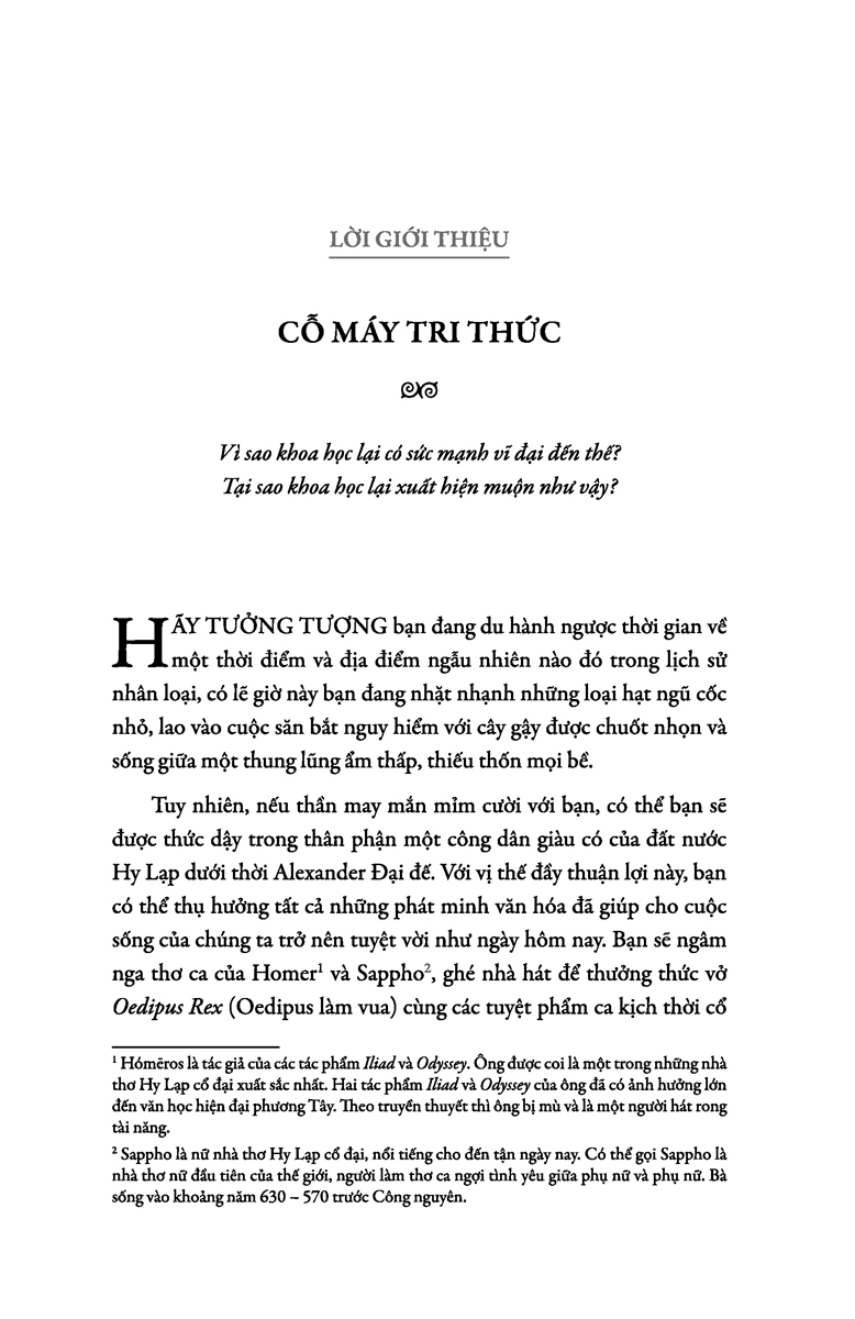 Đây là cuốn sách thay đổi hoàn toàn cách nhìn nhận của chúng ta về nguồn gốc và cấu trúc của khoa học: Vì sao khoa học lại quyền năng đến thế? Vì sao lại mất thời gian nhiều đến như vậy - hai nghìn năm sau khi triết học và toán học ra đời - thì nhân loại mới bắt đầu sử dụng khoa học để học hỏi và nghiên cứu những bí mật vũ trụ?