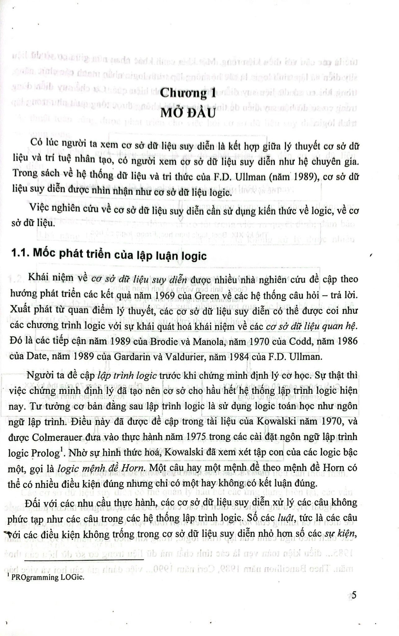 Khái niệm về cơ sở dữ liệu suy diễn được nhiều nhà nghiên cứu đề cập theo Mynech in vervovod rinil hướng phát triển các kết quả năm 1969 của Green về các hệ thống câu hỏi – trả lời. ăn cho diễn có Xuất phát từ quan điểm lý thuyết, các cơ sở dữ liệu suy the được coi như quát hoá khái niệm về các cơ sở dữ liệu quan hệ. các chương trình logic với sự khái quát Đó là các tiếp cận năm 1989 của Brodie và Manola, năm 1970 của Codd, năm 1986 của Date, năm 1989 của Gardarin và Valdurier, năm 1984 của F.D. Ullman.