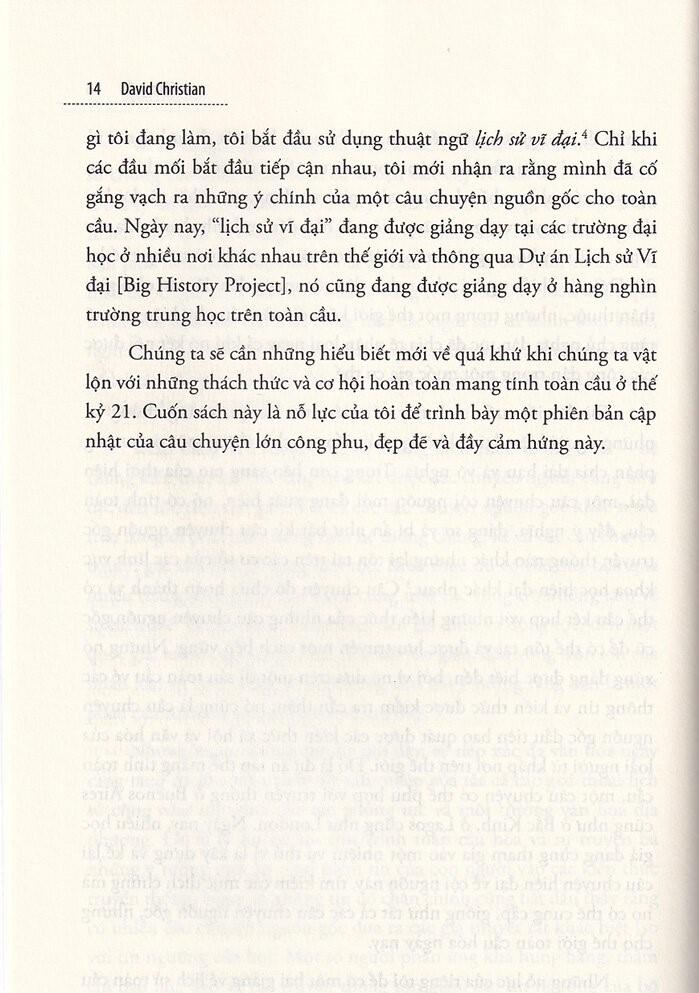 Và như chính tác giả chia sẻ: “Chúng ta sẽ cần những hiểu biết mới về quá khứ khi vật lộn với các thách thức và cơ hội mang tính toàn cầu trong thế kỷ 21. Cuốn sách này là nỗ lực của tôi với mong muốn mang đến một phiên bản mới công phu, đẹp đẽ và truyền cảm hứng hơn của câu chuyện vĩ đại này”.