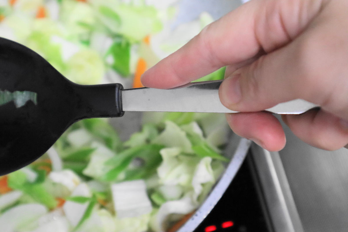Vớt và để ráo ngay trên chảo nóng Móc chảo cho phép dụng cụ nằm trên thành chảo để thoát nước Được làm từ nylon cường lực, thích hợp cho các dụng cụ nấu nướng