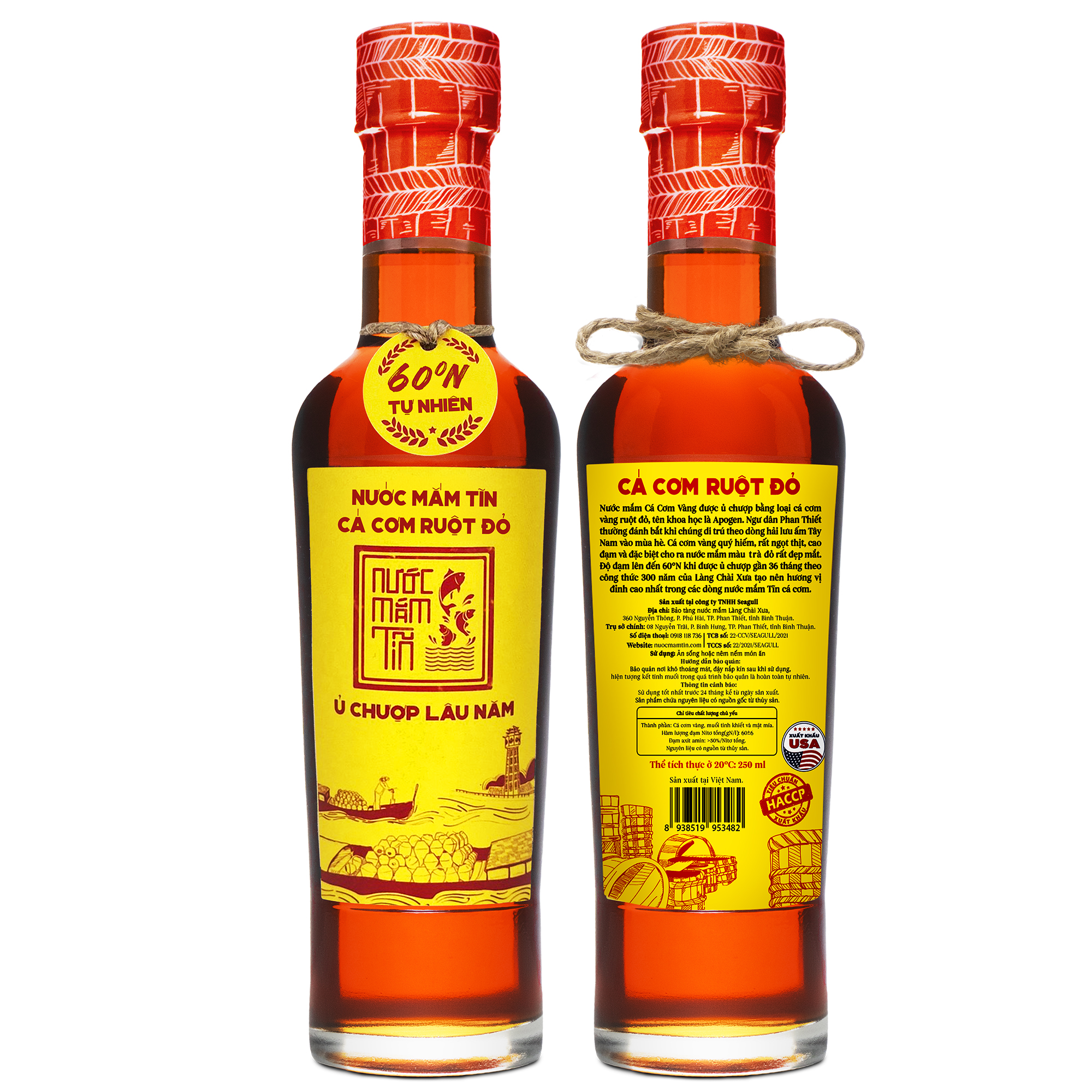 COMBO 2 CHAI NƯỚC MẮM TĨN CÁ CƠM VÀNG RUỘT ĐỎ ĐỘ ĐẠM 60N 250ML