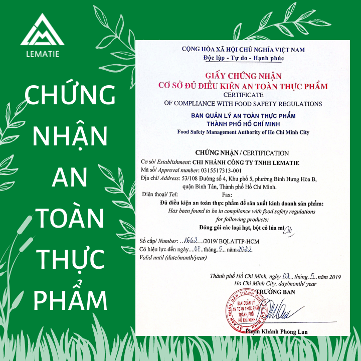 • Sản phẩm bột cỏ lúa mì Lematie chính hãng với giầy tờ đầy đủ và có thể xuất hóa đơn nếu KH có nhu cầu.