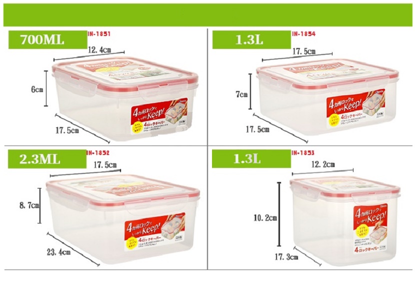 Bộ 03 hộp thực phẩm Vuông inomata 1300ml hàng nội địa Nhật Bản Mã sản phẩm: No.1855# Dung tích: 1300ml ~ kích thước: 17.5 x 17.5 x 7Hcm Chất liệu nhựa PP cao cấp, kết hợp