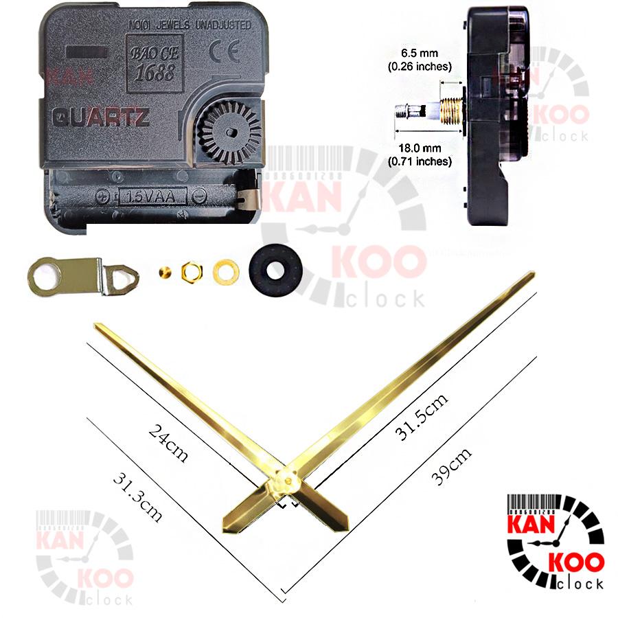MÔ TẢ SẢN PHẨM Bộ linh kiện gắn đồng hồ treo tường, đồng hồ dán tường cỡ lớn bao gồm: 01 máy đồng hồ: Quartz (chạy 2 kim cỡ lớn) 01 bộ 2 kim (Kích