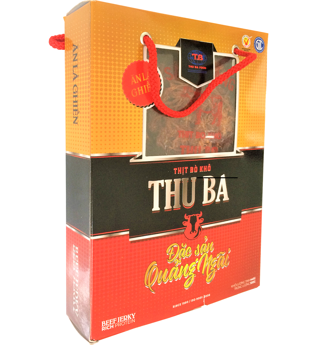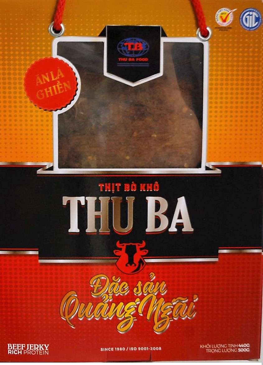 BÒ KHÔ THU BA là món đặc sản Quảng Ngãi, đạt tiêu chuẩn ISO 22000:2018 và là Hàng Việt Nam Chất Lượng Cao do Người tiêu dùng bình chọn từ 2017 đến 2024