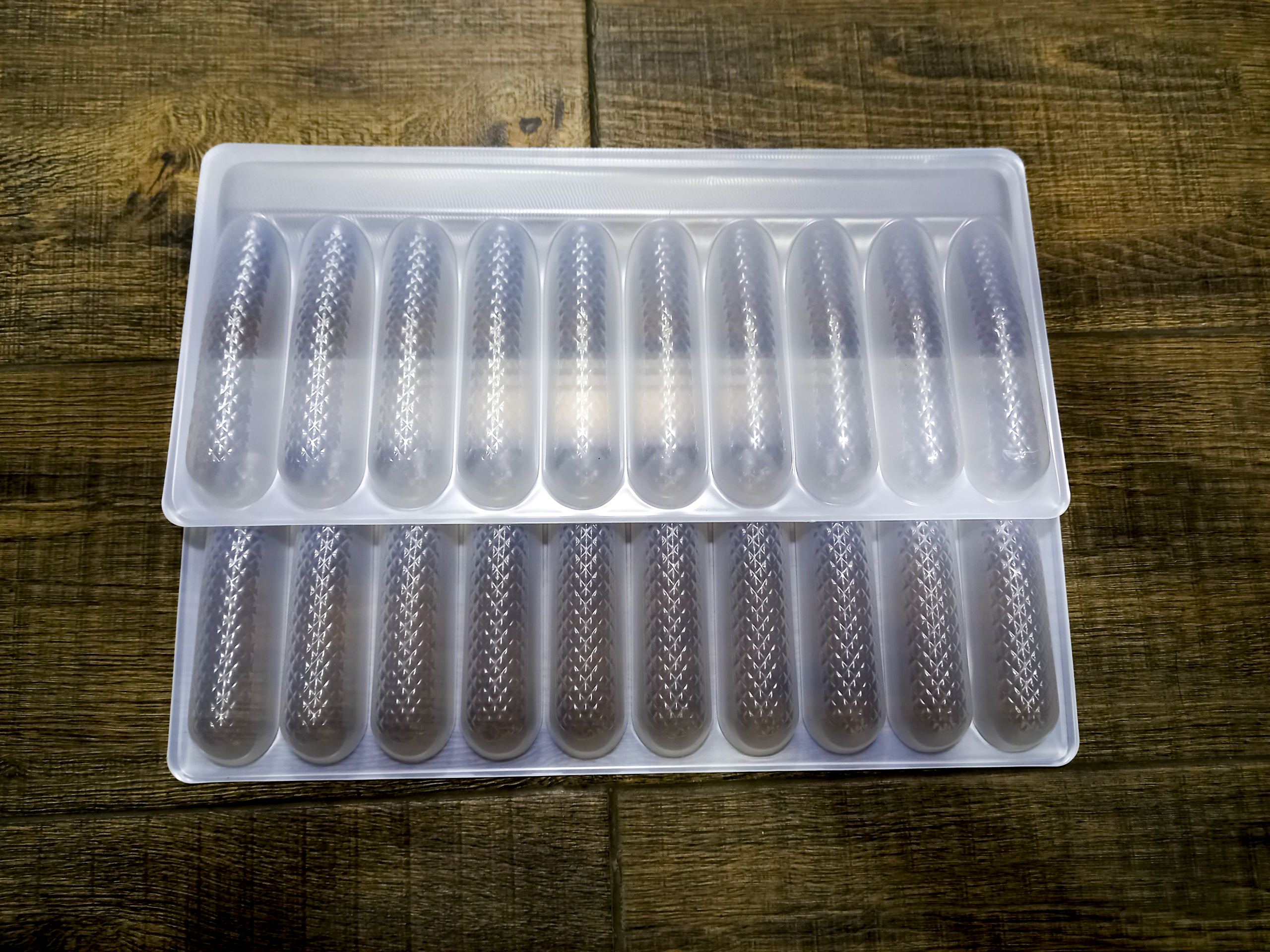 Đặc điểm sản phẩm: Khay nhựa PS đựng tôm được chia ra thành từng ngăn riêng biệt (thường 10 ngăn) với kích thước vừa đủ để đảm bảo sao cho giữ được hình dáng và chất lượng của tôm trong quá trình bảo quản tủ đông trong siêu thị hay vận chuyển trên cont để xuất khẩu đường thủy hay đường hàng không. Đặc biệt Khay nhựa PS đựng tôm Dong Ho TSTP chuyên sử dụng để đựng tôm sú vì kích thước rộng rãi, chất liệu, màu sắc sang trọng của nó mang đến cho sản phẩm.