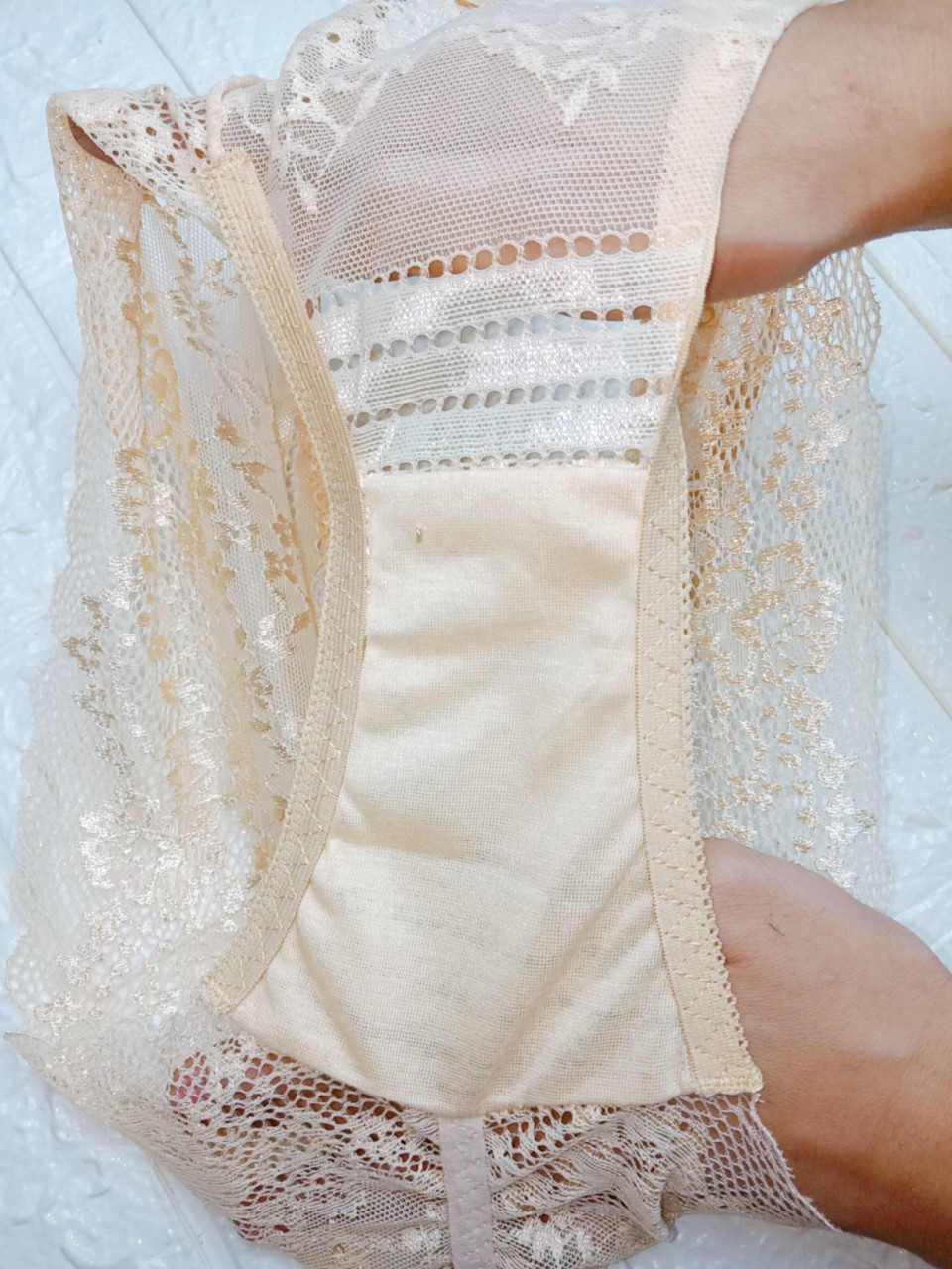 - Chất liệu 100% COTTON - Mềm mỏng thoáng khí, đường ren gợi cảm rất mềm không gây hằn, rát lên da. - Thiết kế ôm sát lấy vòng 3, giúp định hình và tạo
