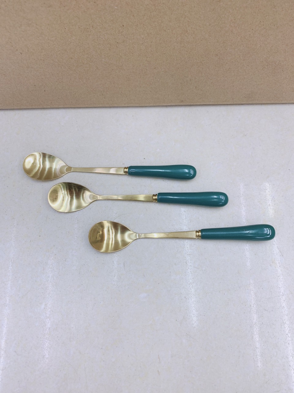 Thìa inox cán sứ cao cấp loại 1 shop mới về phục vụ quý khách . Thìa ăn hoa quả , bánh trái và xiên thịt cũng ok luôn . Kích thước dĩa cầm rất