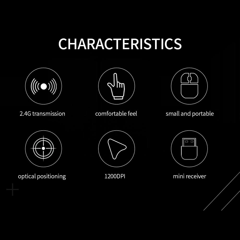 Features: 2.4G Wireless Transmission Technology 2.4GHZ wireless transmission, 8-10meters distance, effectively avoid the interference of BT and WIFI, and ensure the stability of wireless transmission. Low Decibel Keys The mouse has low-decibel buttons with a