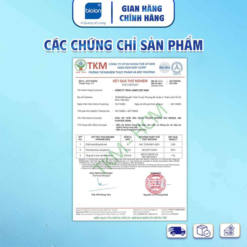 Công nghệ sinh học Nhật Bản. Tác dụng trong 30 giây. Hiệu quả loại bỏ 99,9% vi trùng trong không khí được chứng nhận bởi Viện nghiên cứu Osaka Nhật Bản. Khử sạch mùi khó