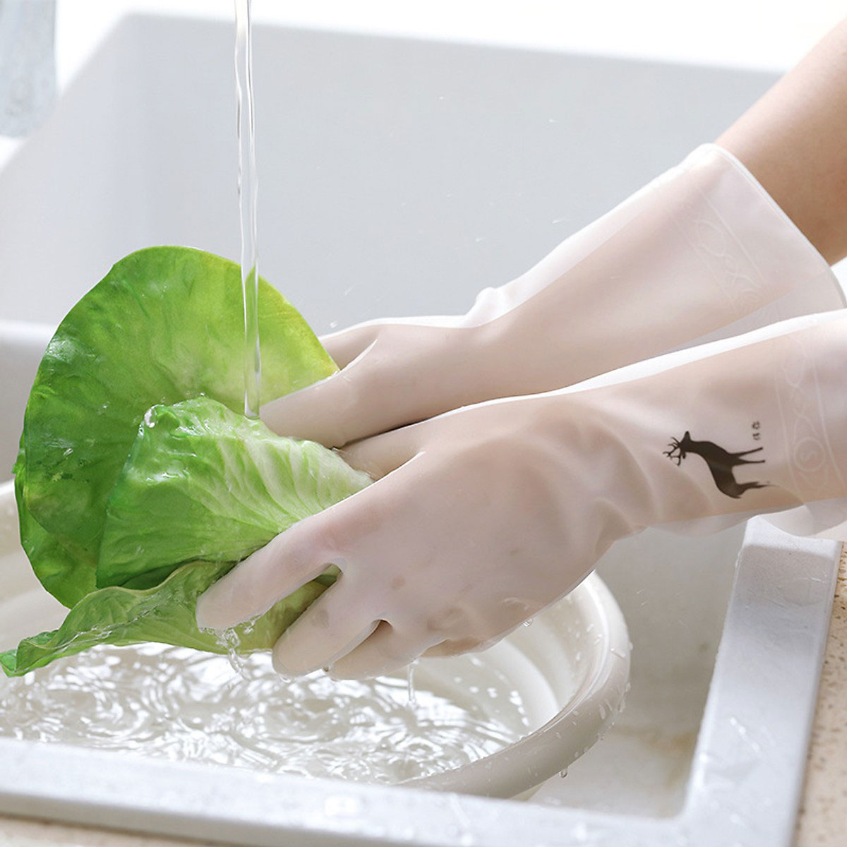 Găng tay cao su con hươu rửa bát chén đa năng bao tay dài làm bếp vườn siêu dai bền