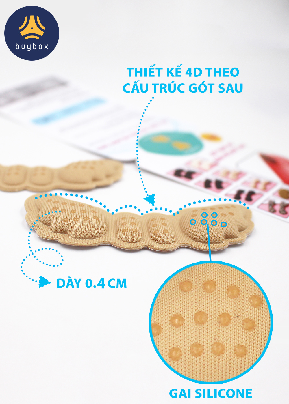 Giày cao gót thật quyến rũ và cũng thật "Đau Đớn" đối với đôi bàn chân. Không ít trường hợp bị trầy da chảy máu, chai sần da gót sau, thậm chí để lại sẹo. Từ nay không còn phải lo lắng nữa vì đã có "Combp 2 cặp Lót gót giày 4D hình cánh bướm có mặt gai silicone chống trầy rách da và chống tuột gót chân - buybox - BBPK70_2" bảo vệ tuyệt đối gót chân của bạn. CÔNG DỤNG NỔI BẬT