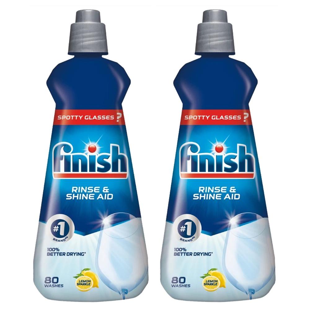 Combo 2 chai nước làm bóng và khô bát, đĩa Finish Dishwasher Rinse & Shine Aid Lemon 400ml (là nước làm bóng và khô bát, đĩa cao cấp chuyên dùng cho máy rửa bát). Xuất xứ: Ba Lan (EU)