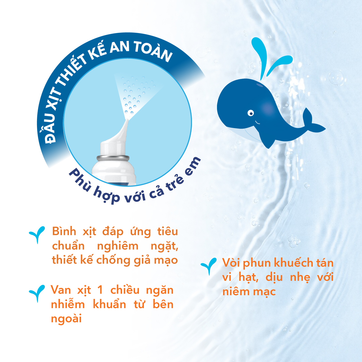 Mua tại Tiktok, THÀNH PHẦN: Nước biển đẳng trương, nước tinh khiết. CHỈ ĐỊNH: Sử dụng hàng ngày, dành cho người lớn và trẻ nhỏ trên 3 tuổi: LIỀU DÙNG: Xịt từ 1 – 2 nhát xịt/ mỗi bên. 1 – 3 lần/ ngày tùy theo nhu cầu CÁCH DÙNG: Khi sử dụng lần đầu, nên ấn mạnh 1 nhát xịt để kích hoạt vòi phun trước khi xịt sản phẩm vào mũi.