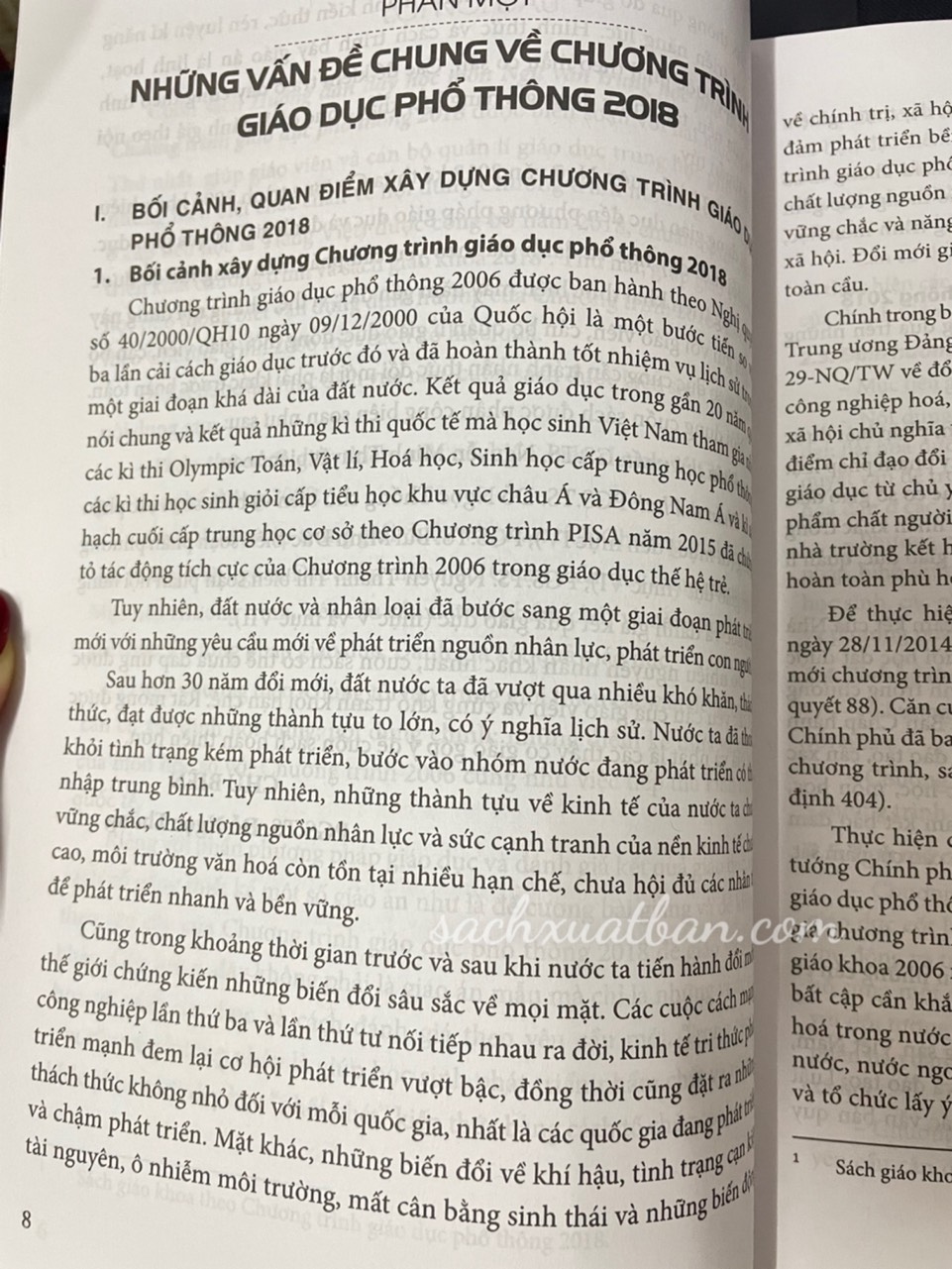 Riêng với phần phương pháp giáo dục và đánh giá kết quả giáo dục, cuốn sách cố gắng thiết kế một số giáo án như là đề cương bài giảng và đề kiểm tra theo yêu cầu của Chương trình giáo dục phổ thông mới để giáo viên tham khảo. Cần lưu ý, đây không phải là giáo án mẫu mà chỉ là những ví dụ minh hoạ về cách dạy học và cách đánh giá theo yêu cầu mới. Trọng tâm của yêu cầu về phương pháp là giúp học sinh phát triển phẩm chất và năng lực, khắc phục cách dạy học “nhồi nhét” kiến thức bằng cách tổ chức các hoạt động học tập, thông qua đó giúp học sinh hình thành kiến thức, rèn luyện kĩ năng để phát triển năng lực. Hình thức và cách trình bày giáo án là linh hoạt, không bắt buộc phải theo mẫu có sẵn. Các đề kiểm tra ở đây cũng theo tinh thần vừa nêu, tập trung đánh giá năng lực; khắc phục cách đánh giá theo nội dung thuần túy.