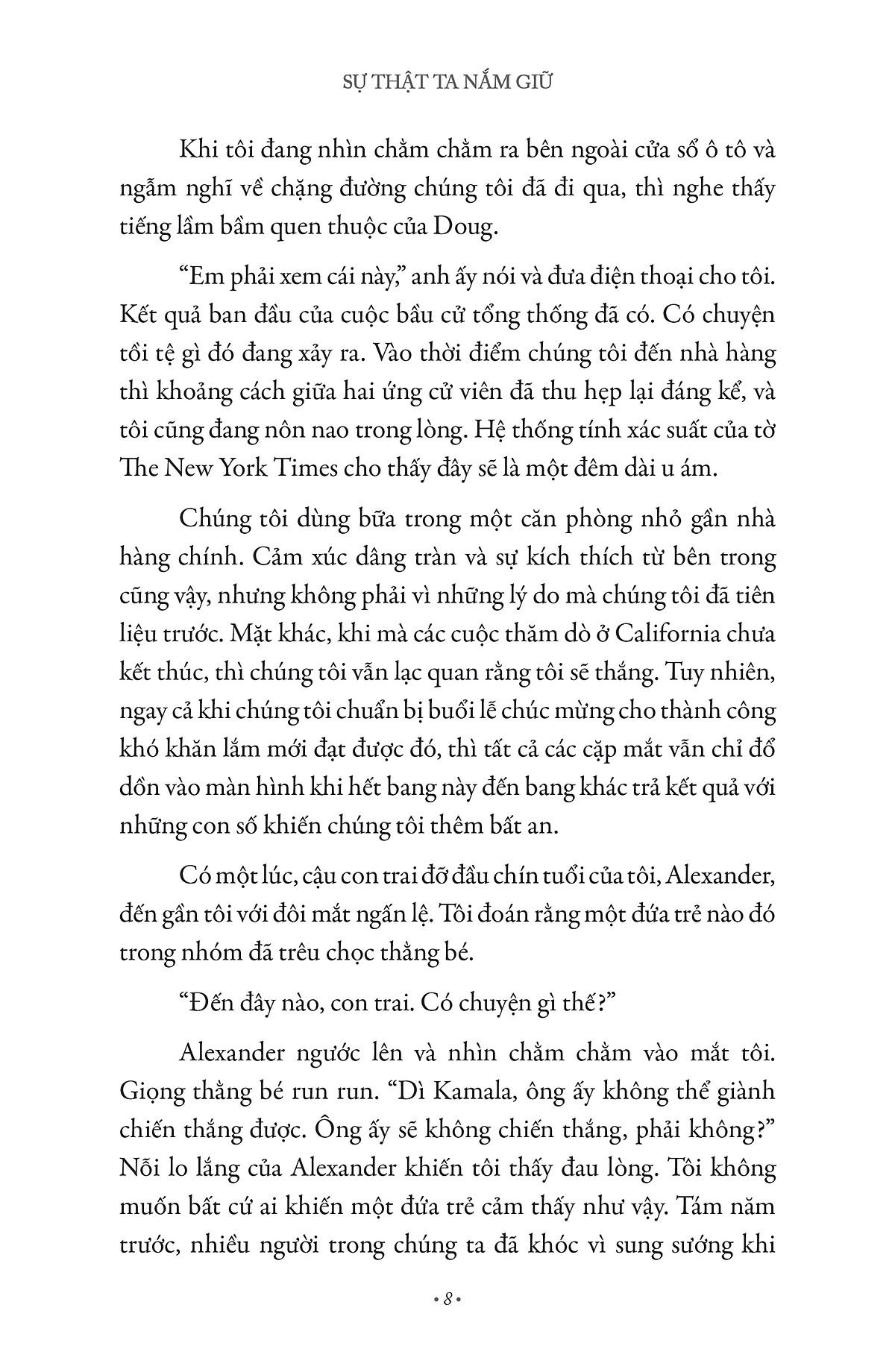 Cuốn hồi ký Sự thật ta nắm giữ của Phó Tổng thống Mỹ Kamala Harris mang tới cho độc giả cái nhìn sâu sắc về những tác động của cuộc đời bà tới xã hội Mỹ. Đây là một câu chuyện chân thực và có sức truyền cảm hứng mạnh mẽ, chắc chắn sẽ làm mê đắm rất nhiều độc giả!