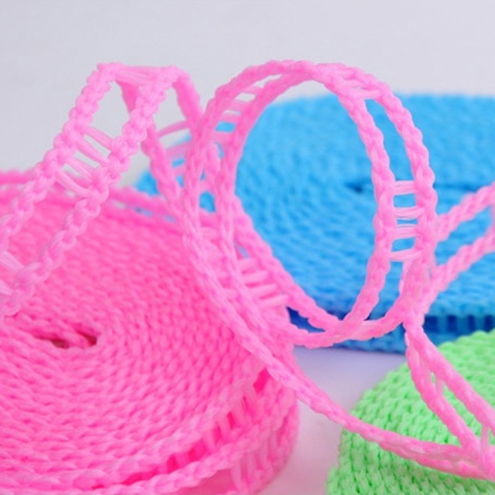 - Chúng ta vẫn thường dùng dây sắt, dây dù, dây thừng để làm dây phơi, nhưng dây dù và thừng không chịu được nắng mưa, nhanh bục, dây sắt thì bị gỉ và có khả năng dẫn điện nên không đảm bảo an toàn. Vì vậy mà chiếc dây phơi tiện ích này sẽ là phương án hoàn hảo cho bạn thay thế những loại dây trên. Dây phơi quần áo thông minh chống dồn quần áo giúp quần áo nhanh khô hơn dài 5m Chất liệu: Nhựa bền chắc, dẻo dai. Chiều dài dây: 5 m (+-3cm). Có 2 móc inox 2 đầu không cần phải buộc nút như dây thông thường. Thân dây phân chia các ô nhỏ cố định móc giúp không bị bay hay bị dồn lại khi phơi ngoài trời.