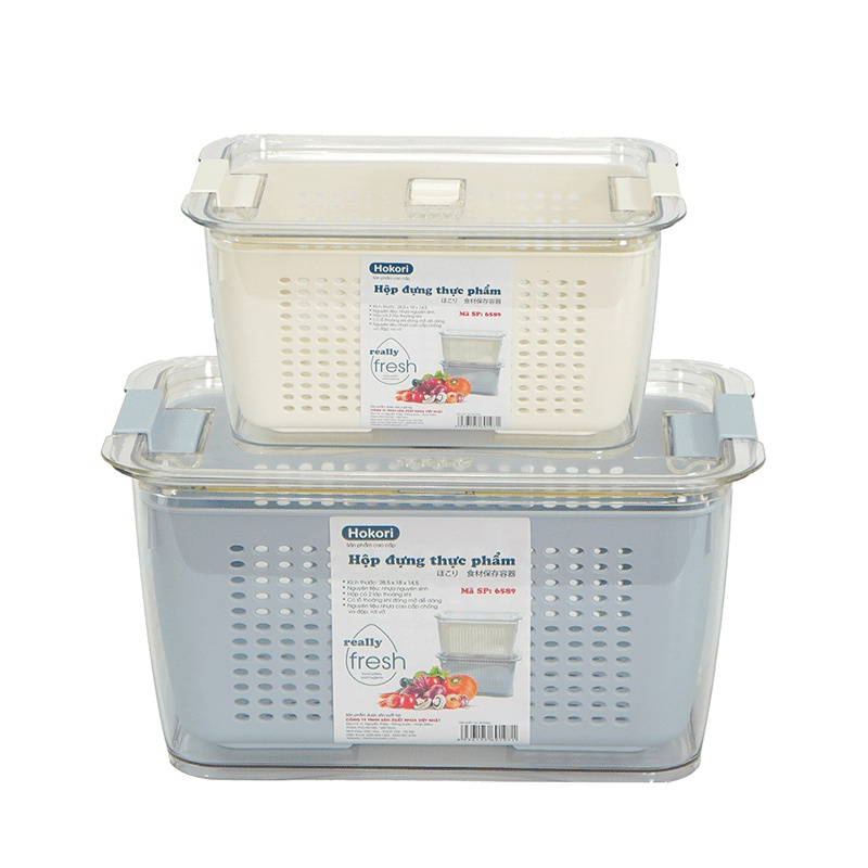 ✨Combo 2 hộp đựng thực phẩm 2 lớp Hokori , Hộp bảo quản thức ăn có lỗ thoát nước Việt Nhật tiện lợi, an toàn - Hàng chính hãng