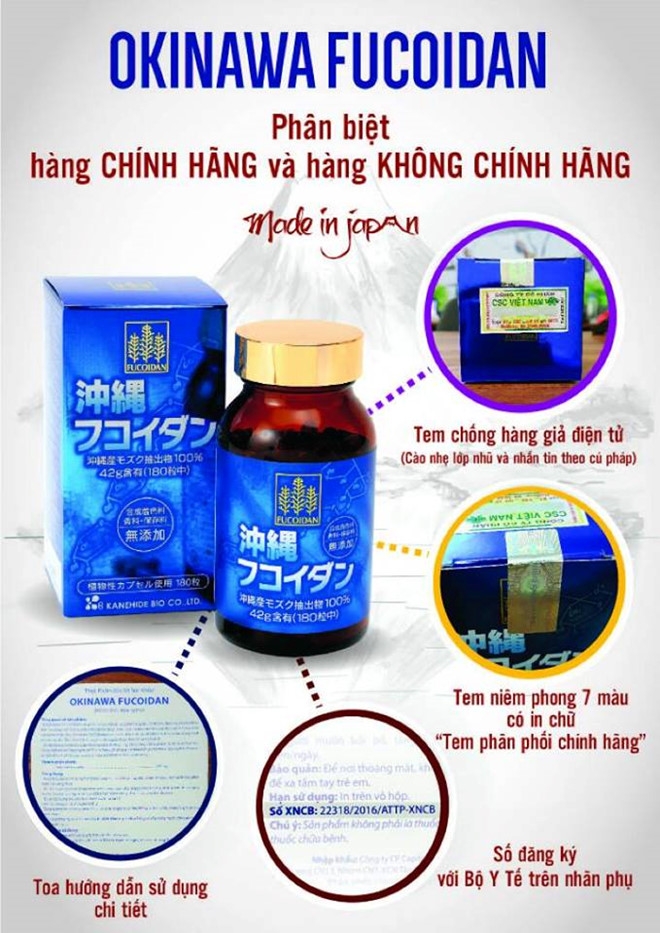 - Giai đoạn xạ ị hoặc hóa ị: Fucoidan giúp kích hoạt quá trình tự chết của tế bào ung thư, đồng thời bao vây lại tế bào ung thư khiến chúng không thể di căn qua khu vực khác. Khi bệnh nhân đã sử dụng phương pháp hóa, xạ ị cơ thể người bệnh bị suy kiệt nhanh chóng, các tế vào xung quanh bị tiêu diệt bởi hóa chất vì vậy Fucoidan giúp sản sinh ra các tế bào mới giúp người bệnh nhân nhanh chóng phục hồi sau mỗi lần điều ị. Hiện nay có tới 70% bênh nhân ung thư tử vong do cơ thể bị suy kiệt khi dùng hóa , xạ ị. Nhiều nghiên cứu đã chỉ ra rằng Fucoidan có thể ngăn chặn sự phát triển của các tế bào ung thư và bảo vệ tế bào xung quanh và tái tạo tế bào mới. CÔNG DỤNG: Phòng và hỗ trợ ức chế mọi loại ung thư và bất kì giai đoạn nào của bệnh. Ức chế sự tăng trưởng của tế bào ung thư, chống khối u lành tính và ác tính, cô lập làm cho tế bào ung thư tự hủy, bảo vệ và phát triển các tế bào mới. Giảm các tác dụng phụ của hóa ị và xạ ị như: Buồn nôn, rụng tóc, mệt mỏi, tiêu chảy, sốt. Nâng cao sức đề kháng, tăng cường hệ miễn dịch cho cơ thể. Phòng và hỗ trợ điều ị xơ vữa động mạch, hạn chế mỡ trong máu, điều hòa huyết áp. Ức chế cơ chế gây béo phì. Kéo dài tuổi thọ, bồi bổ cơ thể. THÀNH PHẦN: Chiết xuất 100% từ rong nâu Mozuku tại vùng biển Okinawa, Nhật Bản. Hàm lượng Fucoidan: trong mỗi viên chứa 235mg Fucoidan tinh chất. ĐỐI TƯỢNG: Bệnh nhân ung thư ở mọi giai đoạn và mọi loại ung thư, bệnh nhân ung thư đang trong quá trình điều ị như: phẫu thuật, hóa ị, xạ ị… Người có khả năng cao mắc bệnh ung thư, theo chỉ định của bác sĩ. Người có sức đề kháng và miễn dịch kém, thường xuyên bị bệnh và mệt mỏi. Người muốn phòng ngừa ung thư, bồ bổ cơ thể và kéo dài tuổi thọ. CÁCH DÙNG: Phòng bệnh: 2 viên/ngày. Bệnh nhân u bướu: 3-6 viên/ ngày. Điều ị: 6-10 viên/ngày chia làm 2 lần. Uống với nước ấm. Sử dụng trước ăn.
