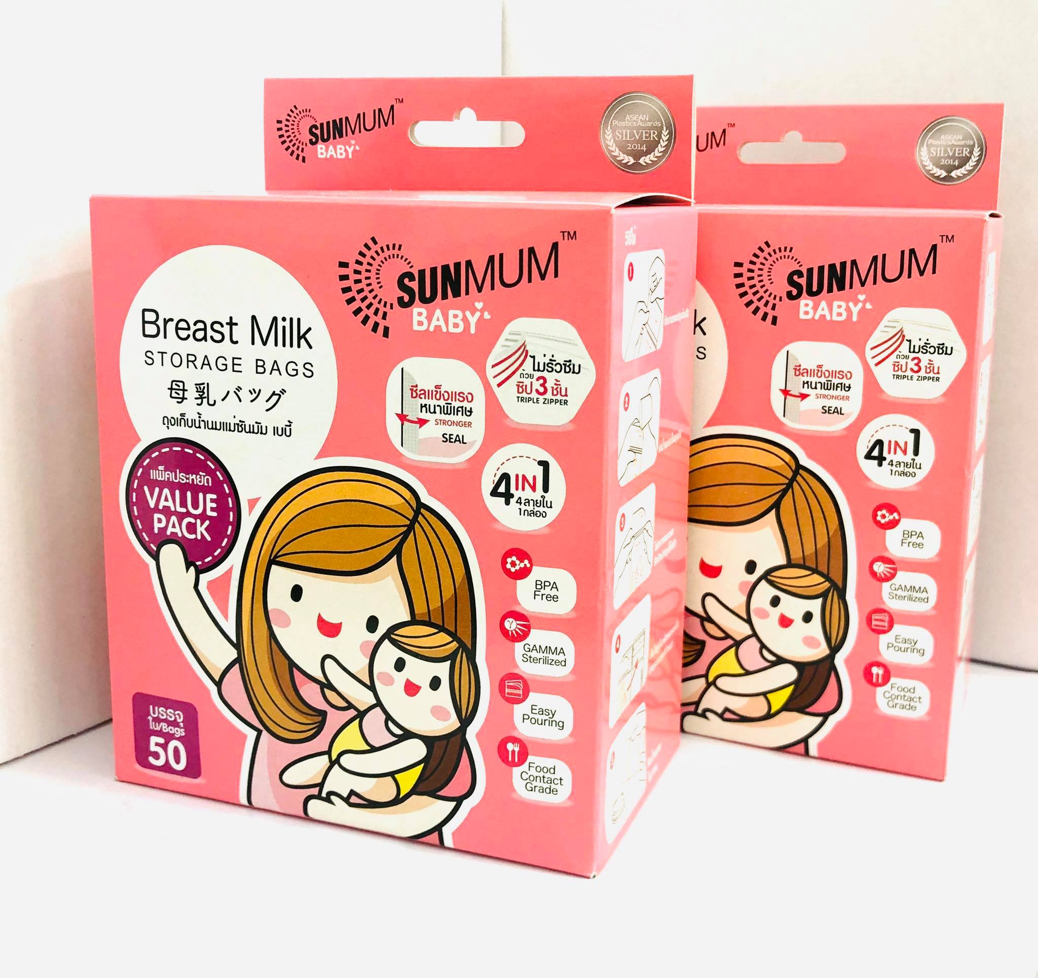 • Thương hiệu túi trữ sữa Sunmum đạt giải thưởng chất lượng ASEAN năm 2014. Hướng dẫn sử dụng: Xé mép để mở miệng túi, cho sữa vào, ép hết không khí và đóng chặt túi. Bảo quản túi sữa trong tủ lạnh hoặc tủ đông trong thời gian quy định. Cho sữa vào bình để sử dụng.