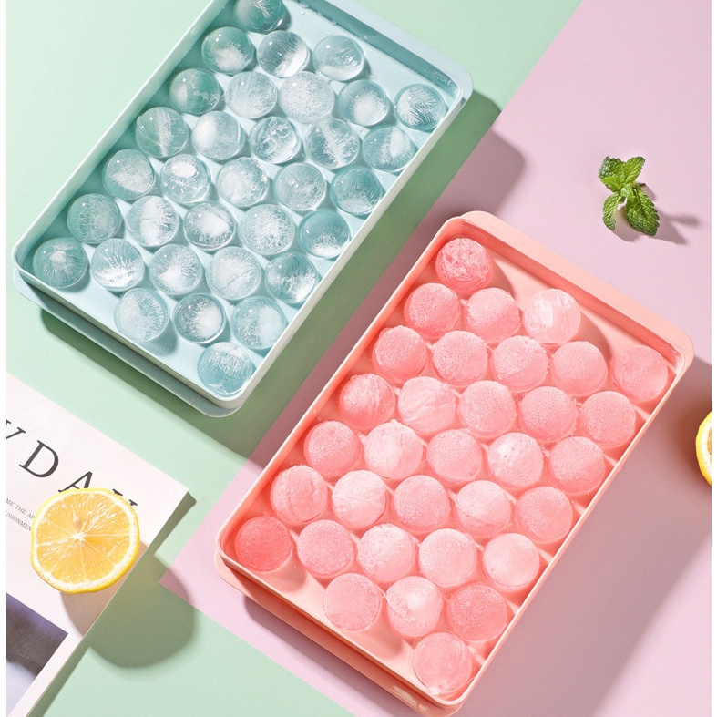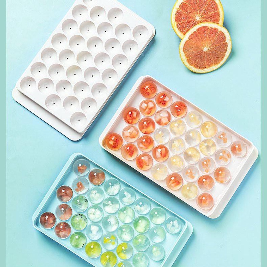 Khay đá tròn số lượng viên nhiều làm được hoa quả kem làm xong viên đá nhìn ngon và đẹp mắt