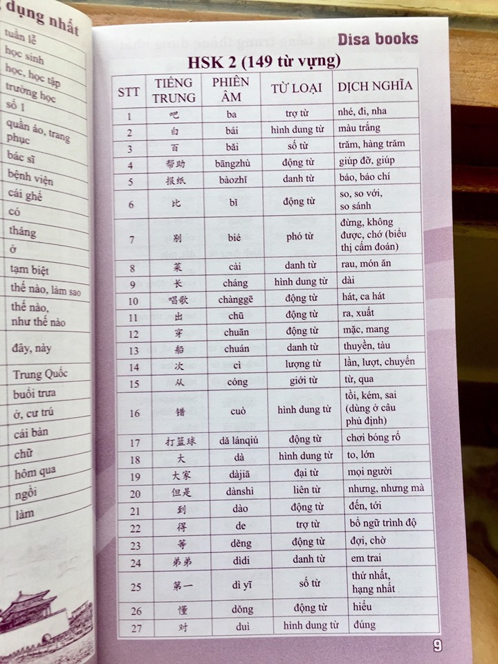 Mua tại Tiktok- 5000 từ vựng tiếng Trung thông dụng nhất Nội dung sách: “Sách – 5000 từ vựng tiếng Trung thông dụng nhất” theo khung đề thi từ HSK1 – 6 cung cấp đầy đủ lượng từ vựng cần thiết giúp việc học từ vựng tiện lợi và hiệu quả hơn, đồng thời hỗ trợ cho việc thi các cấp độ HSK từ 1 đến 6 Tác giả: Trần Thị Tú Oanh, Diệu Hồ Số trang: 184 Năm xuất bản: 2019 Nhà xuất bản: Đà Nẵng Chú ý : Nội dung trong sách tổng 5000 từ HSK1 (146 trang 4) HSK2(149 Trang 9) HSK3(303 từ trang 14) HSK4(606 từ trang 24) HSK5 (1296 từ trang 45) HSK6(2500 từ trang 88) Nhằm đáp ứng nhu cầu học từ vựng của bạn đọc, chúng tôi xin giới thiệu cuốn sách 5000 từ vựng tiếng Trung – Bí kíp chinh phục từ vựng kỳ thi HSK 1 – 6 tổng hợp những từ vựng tếng Trung được sử dụng với tần suất nhiều nhất trong các kỳ thi HSK. Ngoài việc liệt kê những từ vựng thông dụng, chúng tôi còn đưa ra cách phát âm, âm Hán Việt, nghĩa để các bạn có thể hiểu rõ và sử dụng đúng từ vựng vừa học, từ đó giúp các bạn nâng cao vốn từ vựng và nâng cao khả năng tiếng Trung, đặc biệt là đạt kết quả tốt trong các kỳ thi HSK. Để có thể thi được HSK, bạn phải có 1 vốn từ vựng phù hợp. HSK càng cao thì lượng từ vựng cũng càng yêu cầu mở rộng hơn. Cụ thể: Hán ngữ 1: học hết lượng từ vựng trong giáo trình hán ngữ 1 (150 từ). Hán ngữ 2: học hết lượng từ vựng trong giáo trình hán ngữ 1+2 (300 từ). Hán ngữ 3: học hết lượng từ vựng trong giáo trình hán ngữ 1+2+3 (600 từ). Hán ngữ 4: học hết lượng từ vựng trong giáo trình hán ngữ 1+2+3+4 (1200 từ). Hán ngữ 5: học hết lượng từ vựng trong giáo trình hán ngữ 1+2+3+4+5 (2500 từ). Hán ngữ 6: học hết lượng từ vựng trong giáo trình hán ngữ 1+2+3+4+5+6 (5000 từ).
