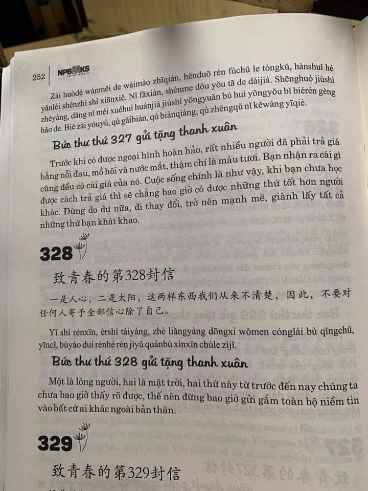 Nội dung sách:Gồm những bức thư song ngữ (Trung – Việt – Pinyin) gửi tặng thanh xuân tươi đẹp