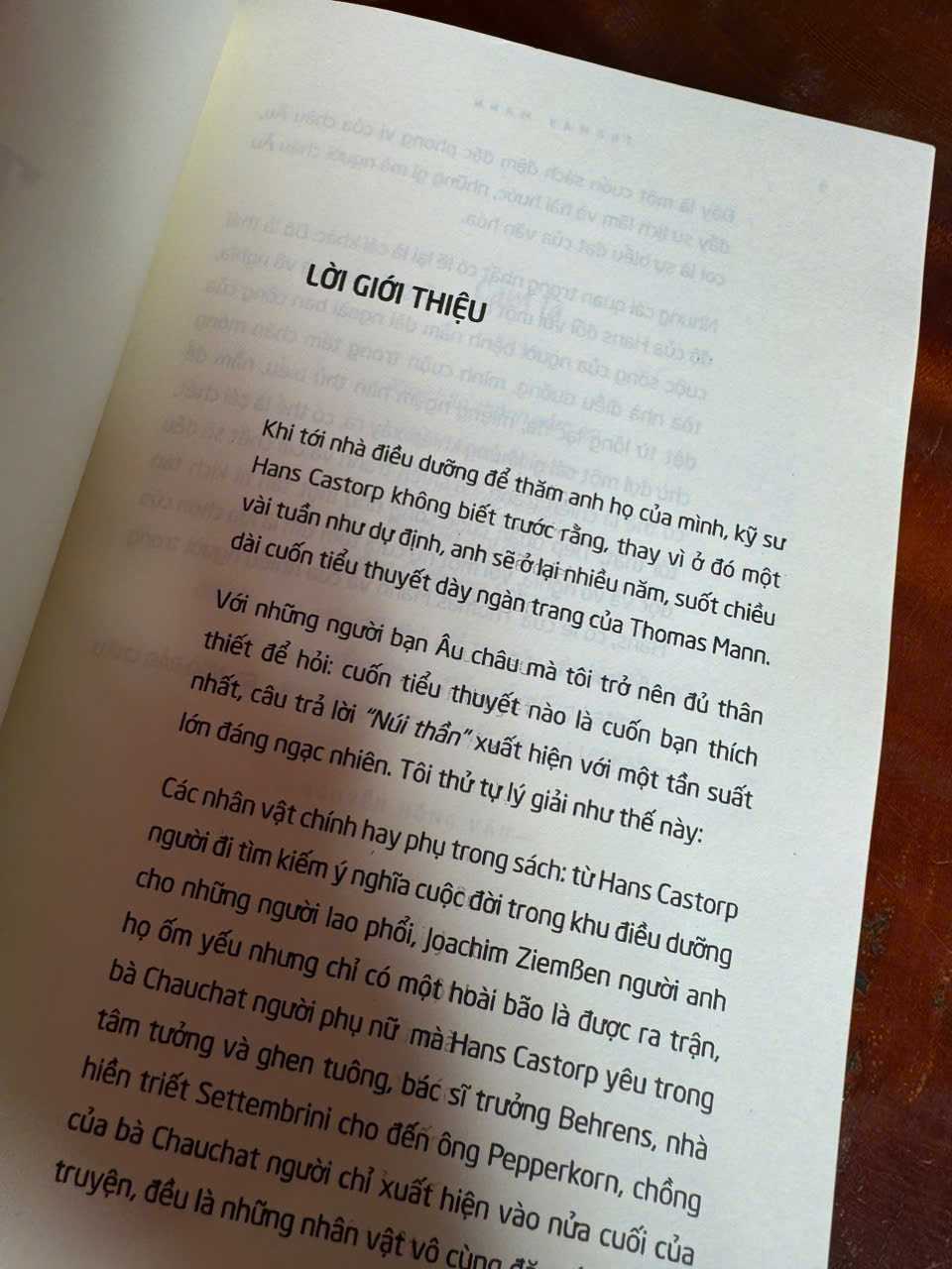 Núi thần (tiếng Anh The Magic Mountain, tiếng Đức Der Zauberberg) được coi là tiểu thuyết vĩ đại nhất của Thomas Mann, nhà văn lớn của nước Đức đầu thế kỷ 20, Nobel Văn học 1929. Đây cũng là một trong những tiểu thuyết có ảnh hưởng lớn nhất của văn học Đức thế kỷ 20. Một điểm tương đồng thú vị: Thomas Mann viết "Núi thần" gần như cùng thời kỳ, và trong mỗi tác phẩm ông đều khắc họa một câu chuyện tình giữa bối cảnh thiên nhiên tuyệt đẹp.
