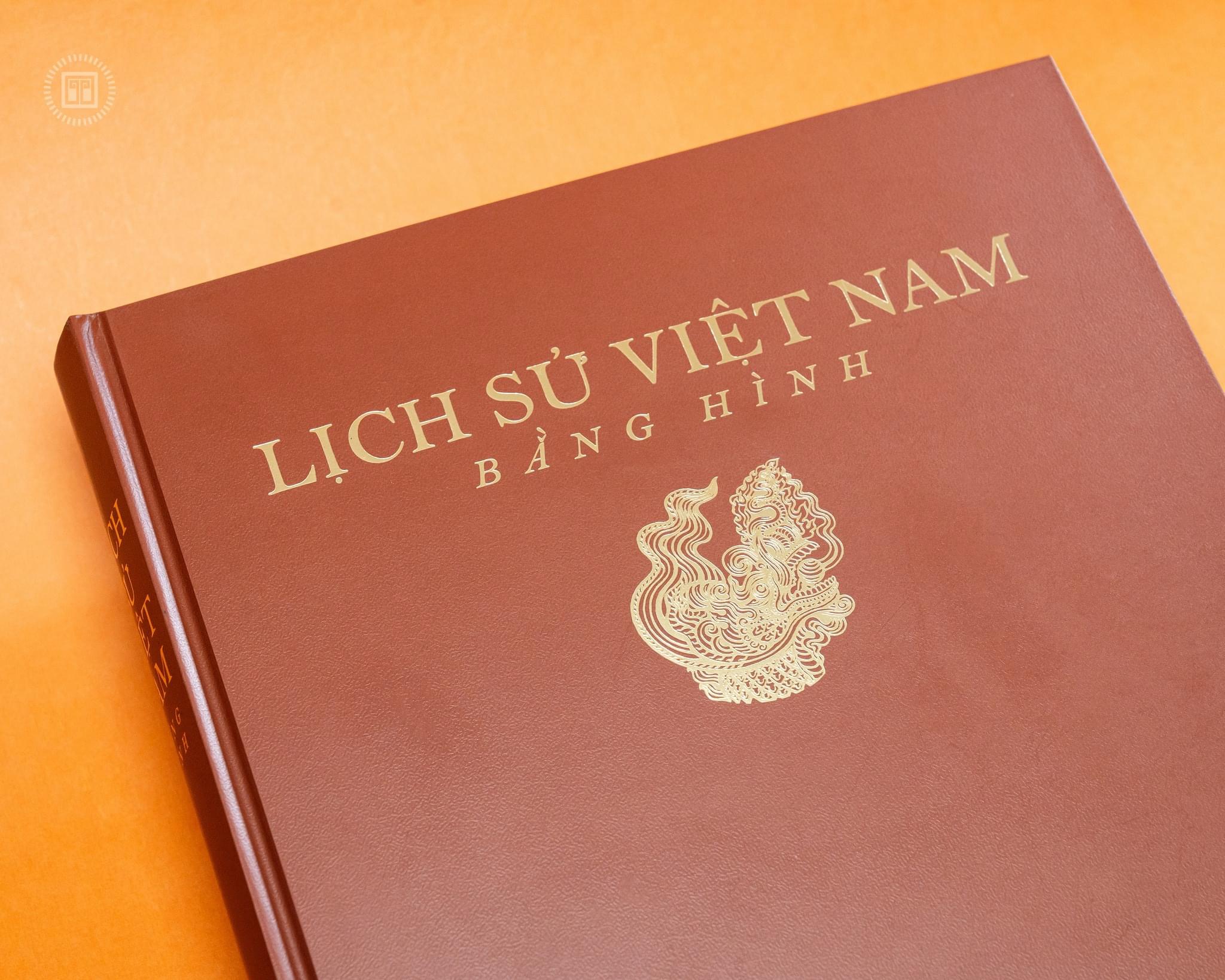Ấn bản cao cấp Việt Nam sử lược có bìa cứng, ruột in 2 màu trên giấy GV76-BB định lượng 100 gsm, quà tặng kèm gồm bản đồ, bookmark và bộ postcard 8 tấm.