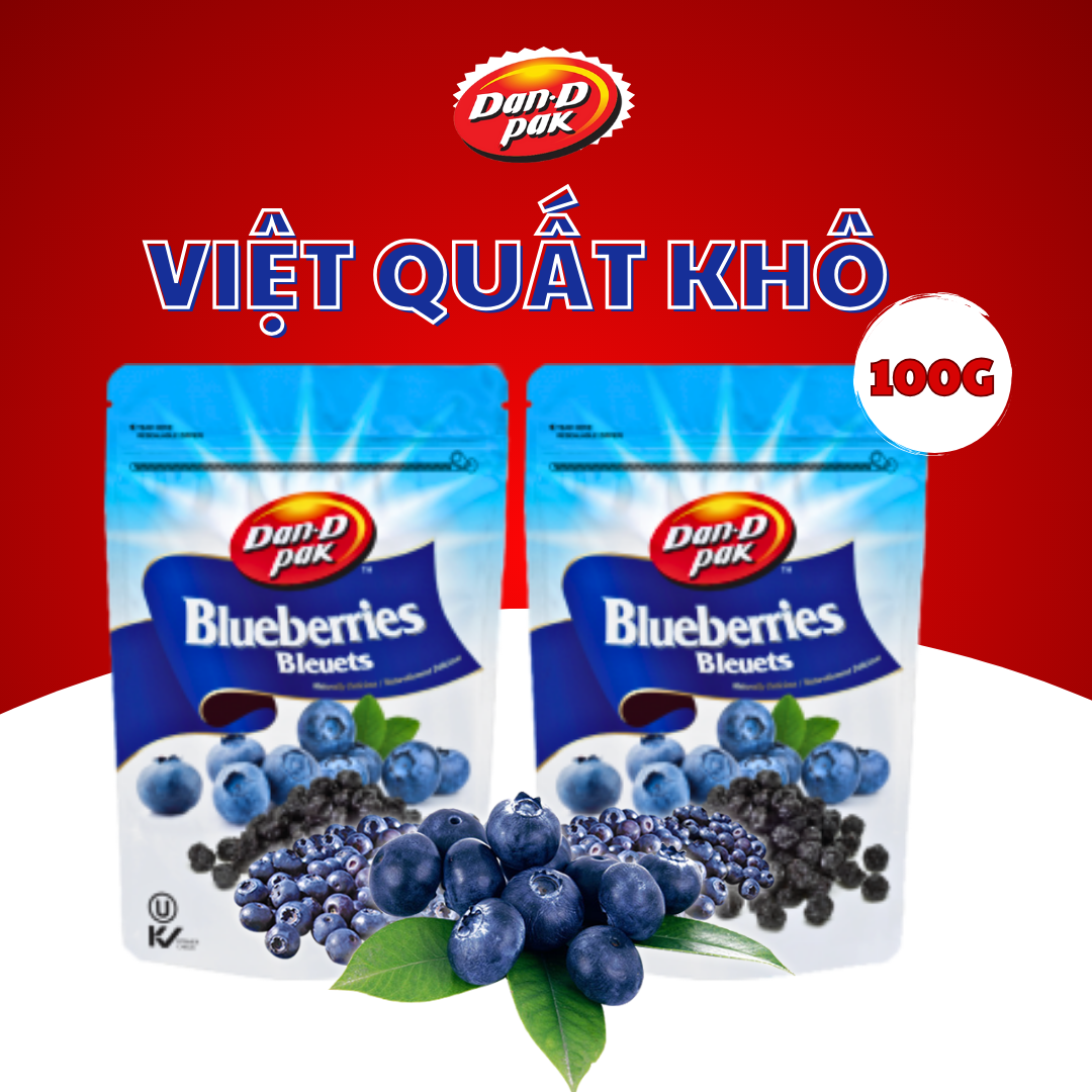THÔNG TIN SẢN PHẨM TRÁI CÂY SẤY + Thành phần: việt quất tự nhiên. + Xuất xứ: Mỹ + Trọng lượng: 100G, 120G + HSD: 1 năm kể từ ngày sản xuất + Đạt các