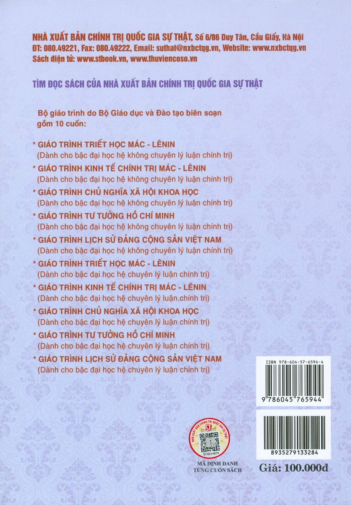 Bộ giáo trình lý luận chính trị gồm 5 cuốn dành cho bậc đại học hệ không chuyên lý luận chính trị. Bộ sách là tài liệu giảng dạy, học tập cho giảng viên, sinh