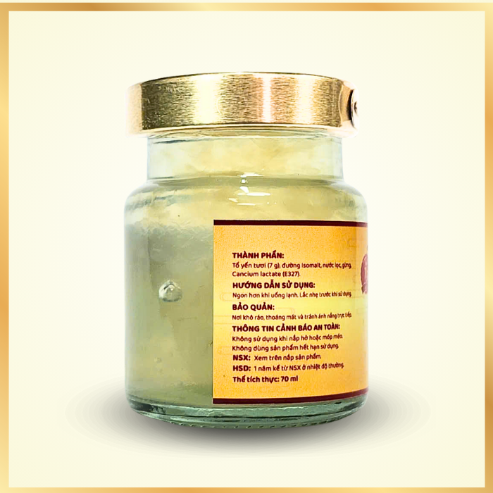 - Yến sào: Hỗ trợ tăng sức đề kháng cho cơ thể, chống lão hóa, ổn định thần kinh, trí nhớ, kích thích tiêu hóa, phục hồi sức khỏe nhanh chóng trong thời gian dưỡng bệnh. Đối tượng sử dụng: thích hợp cho mọi đối tượng đăc biệt trẻ từ 3 tuổi trở lên Sản xuất: Việt Nam Thành phần: Nước, , Yến sào (25%), đường phèn (4%) , chất ổn định (E406), hương liệu dùng cho thực phẩm. Cách dùng: - Lắc nhẹ trước khi uống, ngon hơn khi uống lạnh, tránh đun nóng sản phẩm trước khi sử dụng. - Uống trực tiếp từ lọ. --Uống từ 1 - 2 lọ/ngày. Sản phẩm thích hợp cho người lớn tăng sức đề kháng giúp cơ thể khỏe mạnh, phục hồi sức khỏe cho người bệnh, Không sử dụng sản phẩm khi hết hạn, nên sử dụng một lần sau khi mở nắp.
