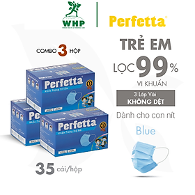 ✨[Combo 3 - PERFETTA CHILDREN] - Khẩu Trang Y Tế Trẻ Em Chất Lượng Cao, Kháng Khuẩn, Chống Bụi Mịn, Màu Xanh, 3 Lớp, Bảo Vệ Tối Ưu, Đóng Gói Từng Cái - (35 cái/hộp)