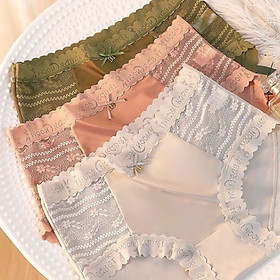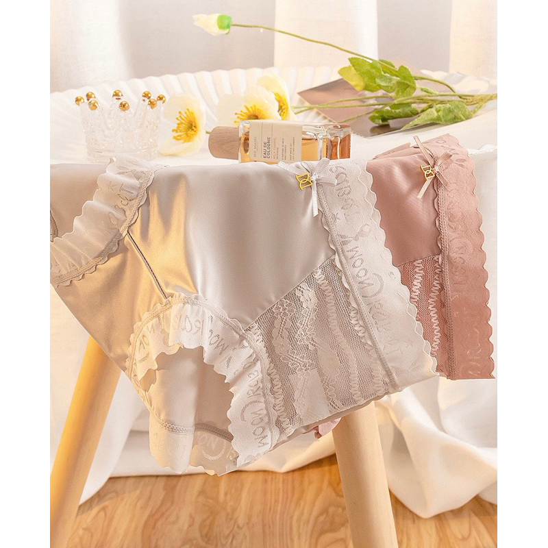 ✨Combo 3 quần lót nữ lụa phối ren cao cấp cạp cao mềm mát MXM
