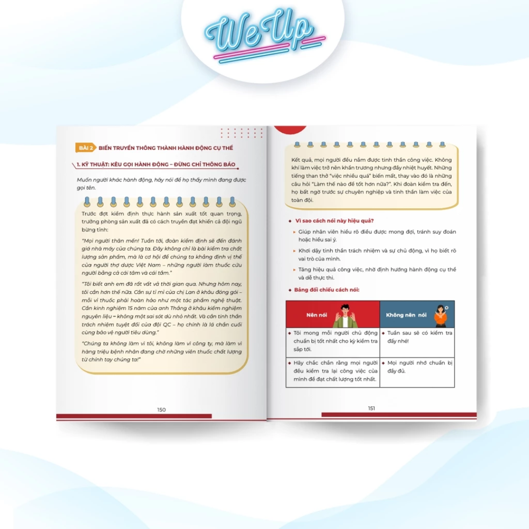 - Sách - 100 Mẫu câu giao tiếp quản lý với nhân viên Thông tin chi tiết Công ty phát hành: CÔNG TY TNHH WE UP Nhà xuất bản: Dân Trí Tác giả: WEUPBOOKS Năm xuất bản: 2025 Số trang: 172 Nội dung sách: 100 mẫu câu tình huống cụ thể: