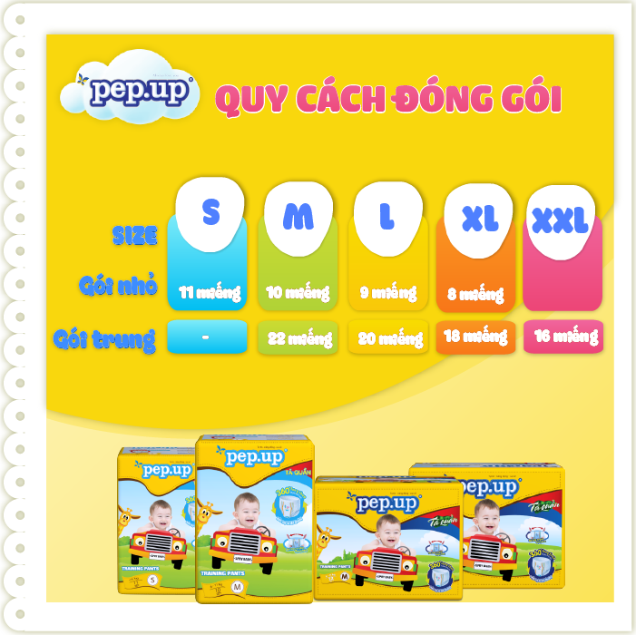 Combo 4 Gói Tã/Bỉm Quần Em Bé Pep.up Extra Dry Siêu Mềm Mại, Siêu Khô Thoáng, Kháng Khuẩn Size L (9 Miếng/Gói)