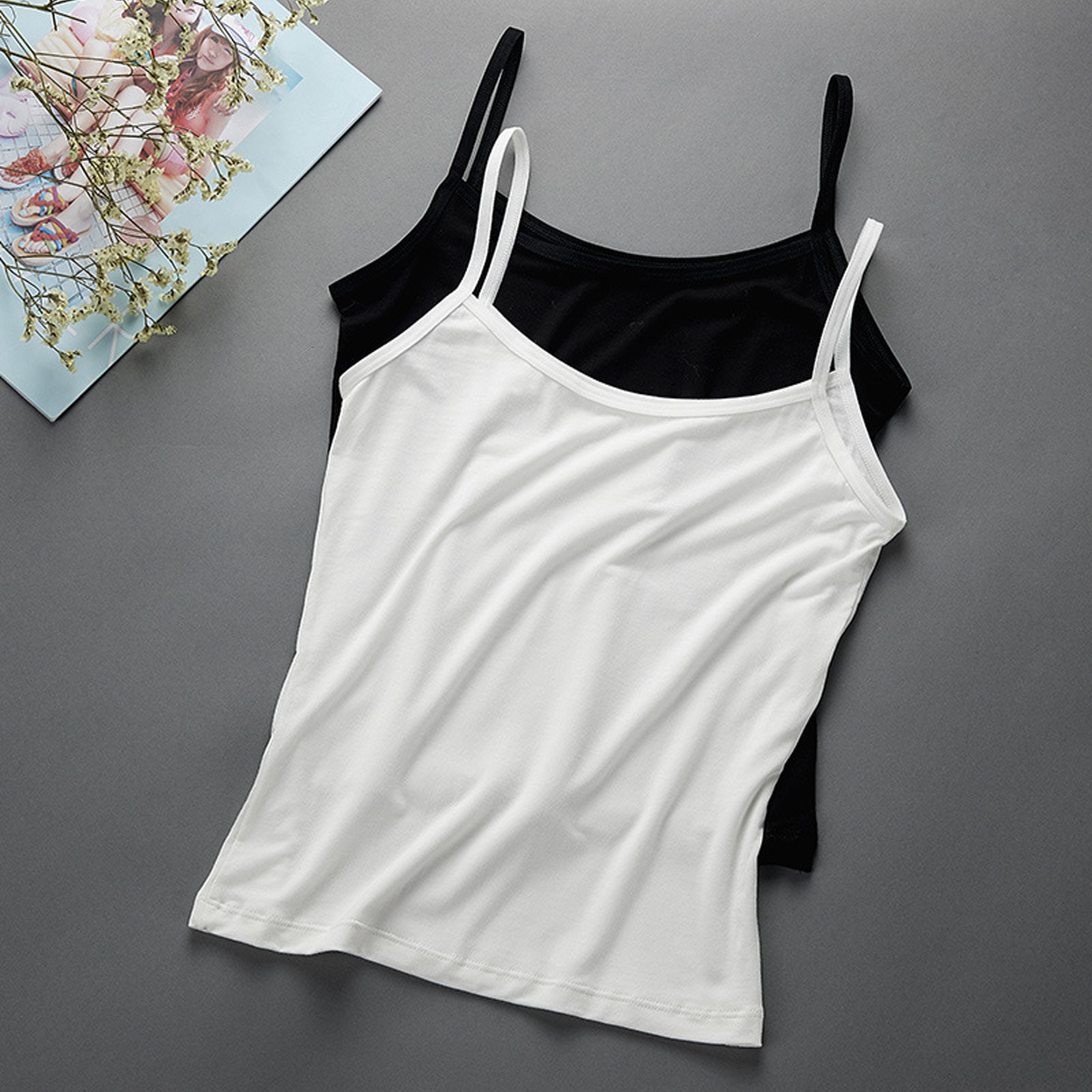 Áo hai dây camisole cơ bản, là chiếc aó thiết yếu mà mỗi người phụ nữ đều cần. Mặc lót bên trong, mặc phối cùng áo vest, mặc phối cùng quần shorts váy ngắn đi