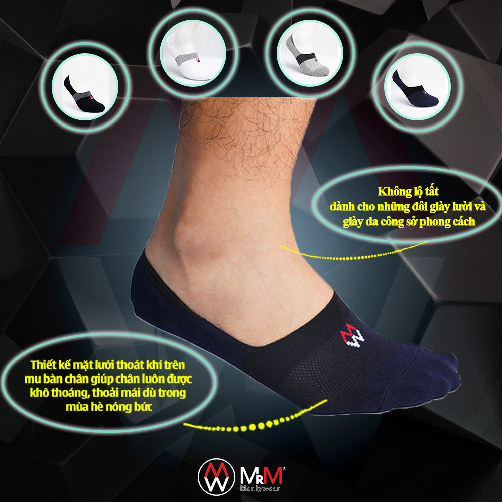 KIỂU DÁNG: Tất lười/hàiCHI TIẾT SẢN PHẨM:. Tất lười MRM không lộ tất dành cho những đôi giày lười và giày da công sở phong cách.. Vòng ép quanh mu bàn chân giúp tất ôm khít mọi chuyển động của bà...