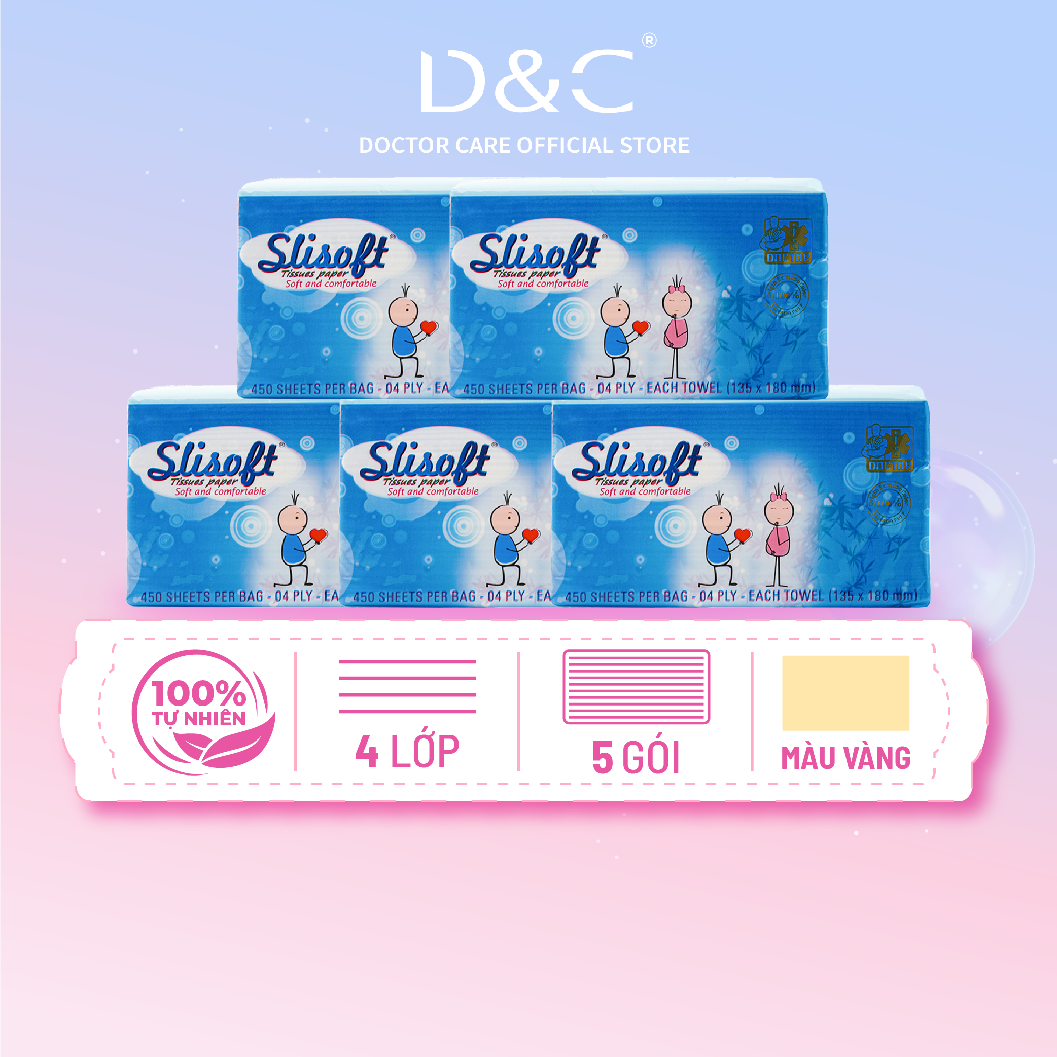 ✨Combo 5 Giấy ăn Slisoft Vàng x 450 tờ Đa Năng, Khăn Giấy Rút Không Chất Tẩy Trắng An Toàn Cho Cả Gia Đình