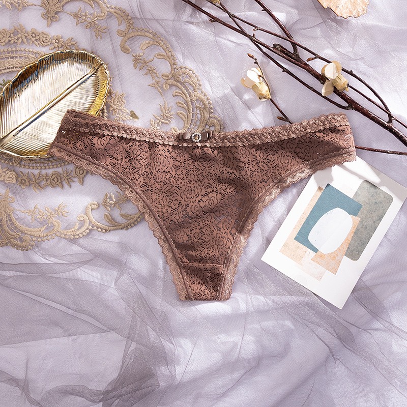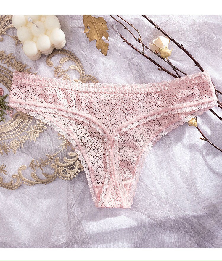 Free Size<55kg 1. Tên sản phẩm: Quần lót lọt khe dành cho nữ 2. Chất liệu: Ren 3. Màu sắc: Nhiều màu tùy chọn 4. Kích thước sản phẩm: Một kích cỡ 5. Phong cách: