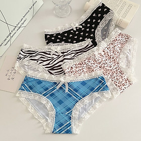 ✨Combo 5 Quần Lót Nữ Thun Nhiều Họa Tiết Viền Ren 029 – Mềm Mại, Co Giãn, Nữ Tính