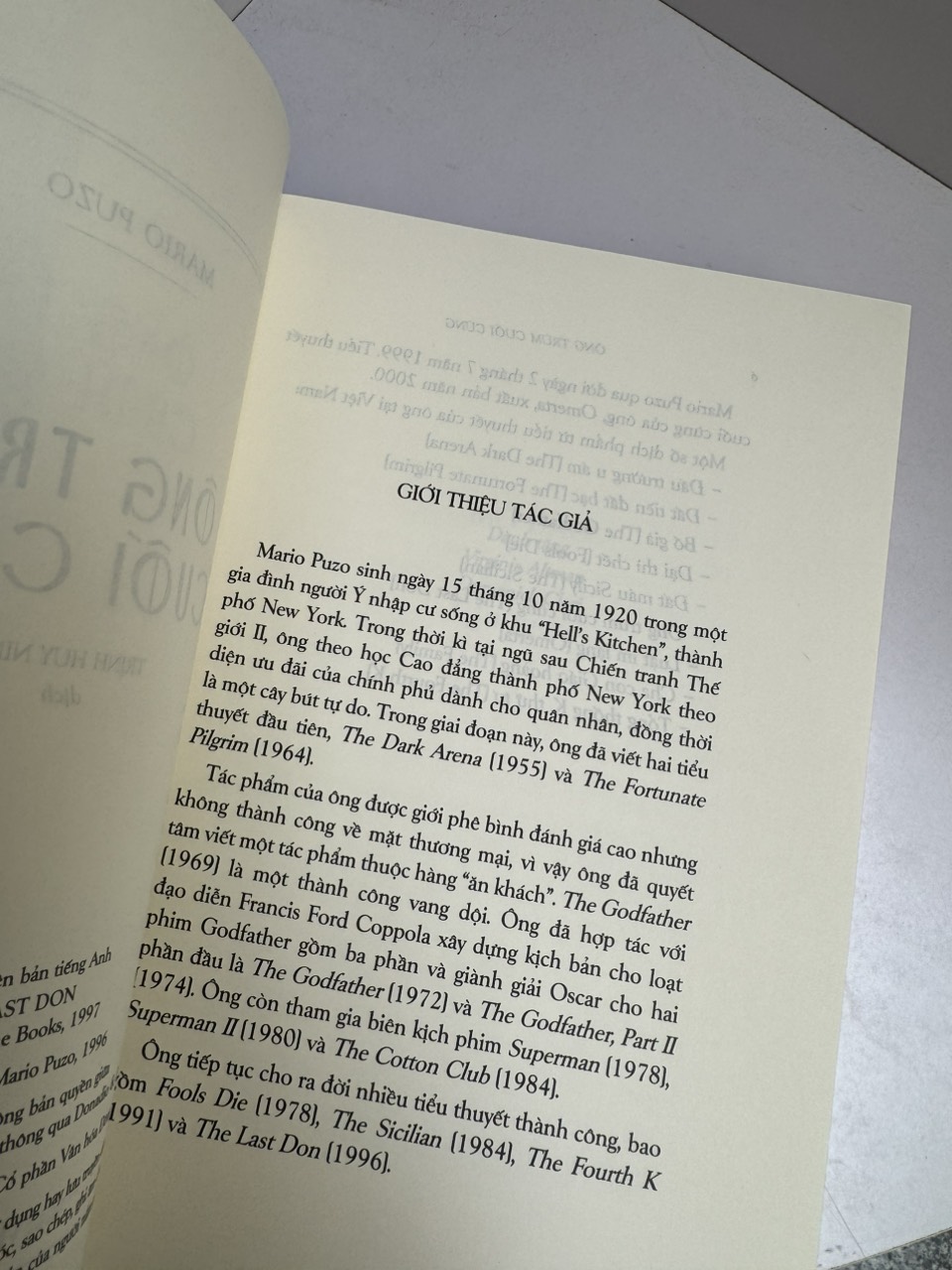 Ông trùm cuối cùng, cùng với Bố già và Luật im lặng, đã tạo nên bộ ba tiểu thuyết trứ danh của Mario Puzo về đề tài mafia.