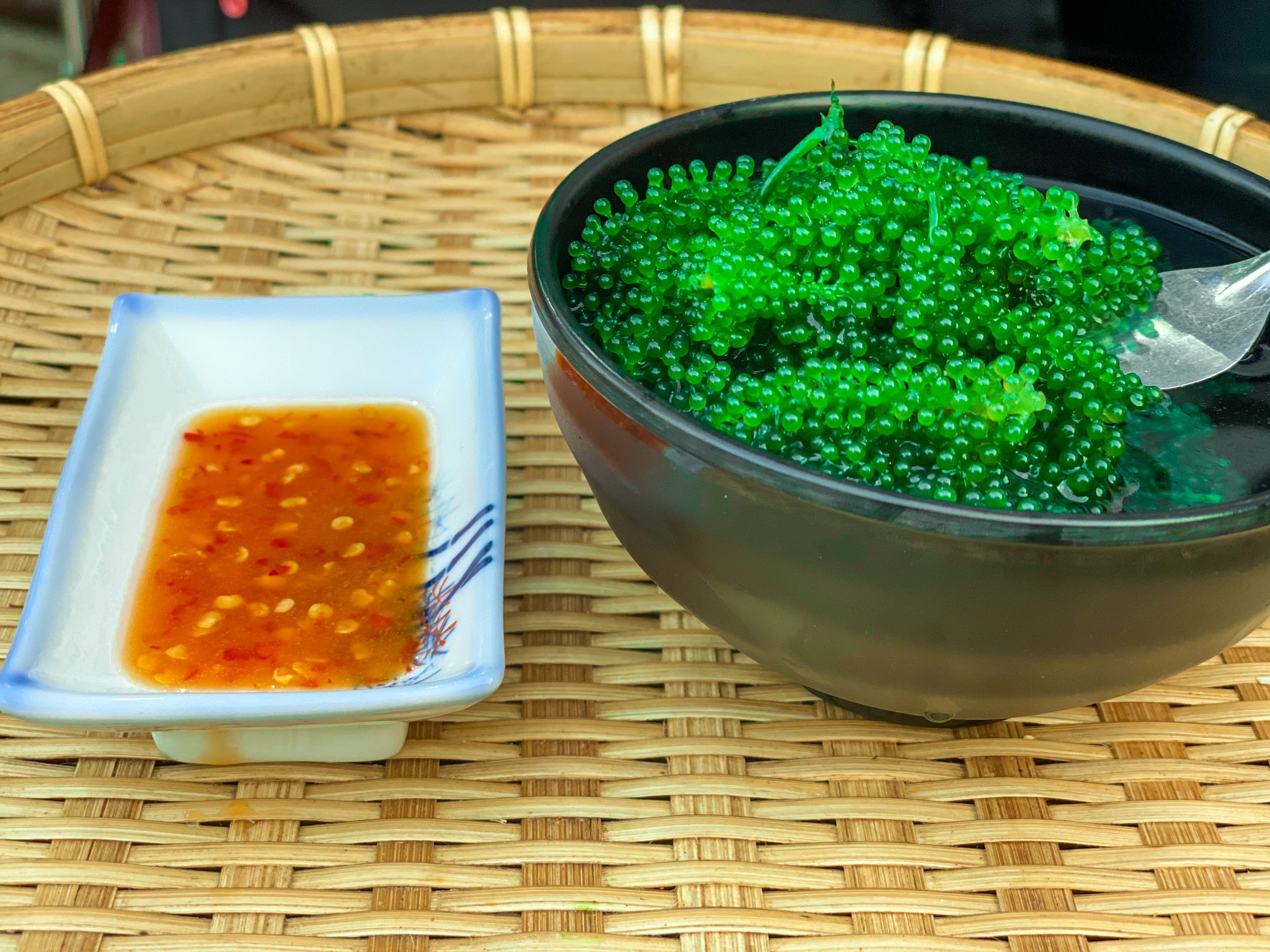 Rong nho tách nước Gren Food giá rong nho biển Nhật, rong nho ăn với nước sốt mè rang