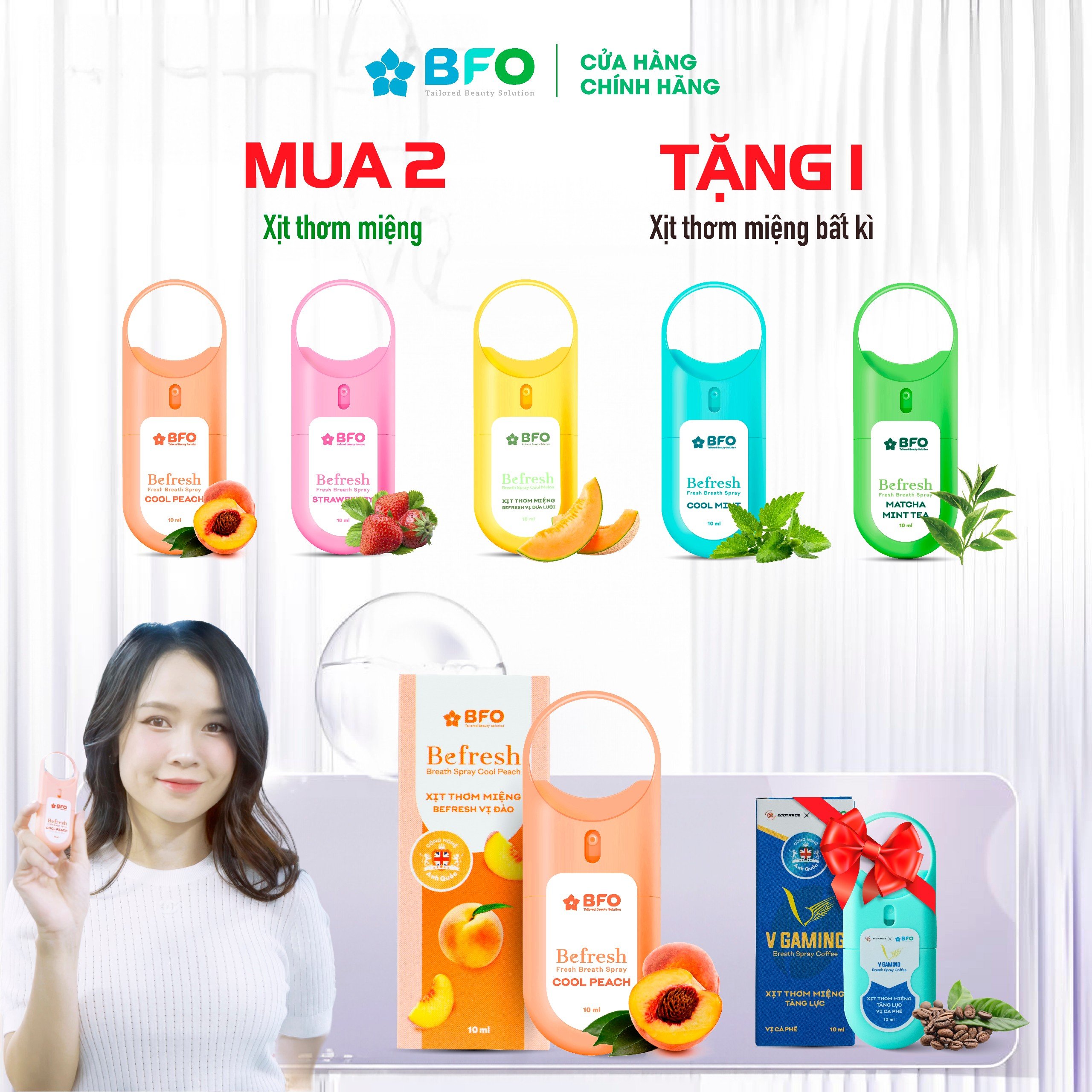 ✨Combo 5 Xịt Thơm Miệng BFO Cho Hơi Thở Thơm Mát 10ml An Toàn (Trà xanh, Bạc Hà, Đào, Dâu, Dưa Lưới)