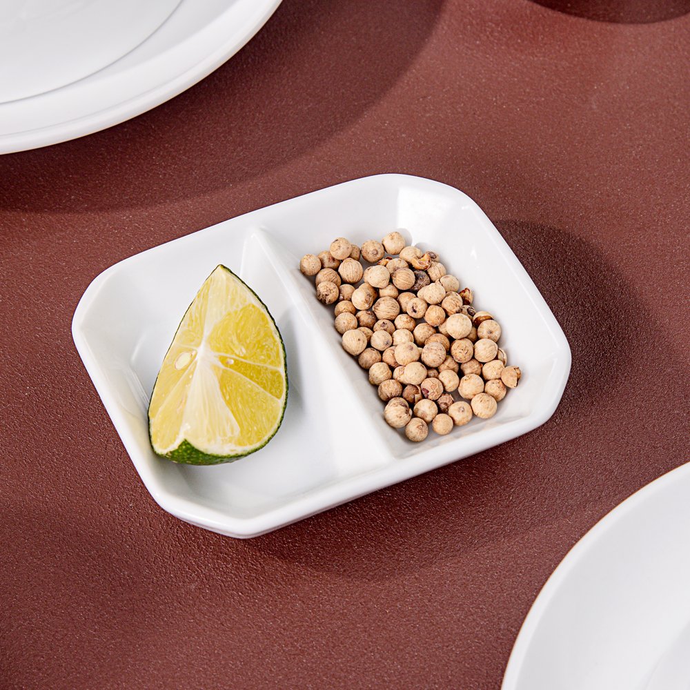Đĩa chấm (đĩa gia vị hai ngăn) sứ cao cấp Long Phương là sản phẩm không thể thiếu trong mỗi bữa cơm gia đình và nhà hàng, khách sạn. Sản phẩm thiết kế nhỏ gọn, hai ngăn , tiện lợi cho việc sử dụng. Đặc biệt, là an toàn cho sức khỏe người dùng bởi những quy trình nghiêm ngặt, kỉ luật trong sản xuất.