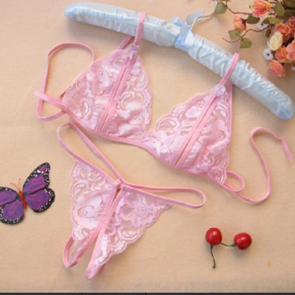 ✨Combo áo lót và quần lót ren thêu hoa - Màu hồng