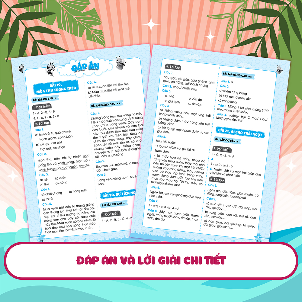 Đáp án chi tiết, rõ ràng: Phần đáp án chi tiết ở cuối sách giúp phụ huynh và các con có thể tự đối chiếu và đánh giá sau khi hoàn thành bài tập, từ đó có phương pháp ôn luyện phù hợp cho con.