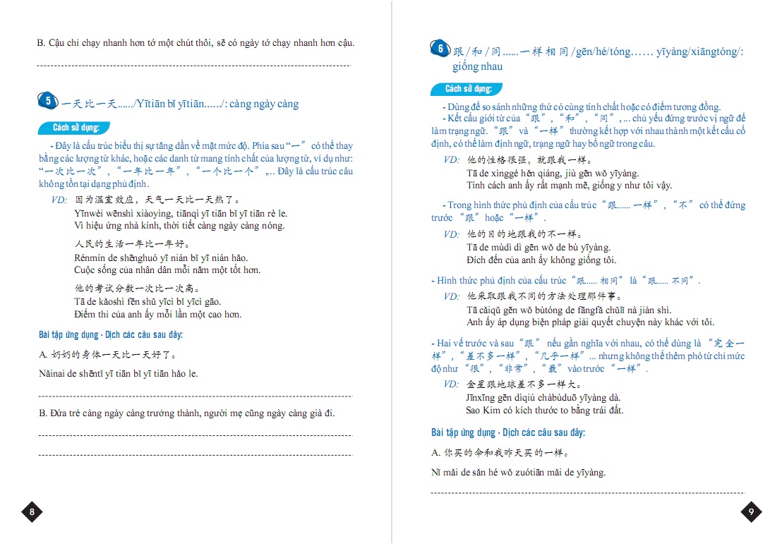 - ĐẶC_TRƯNG_NỔI_BẬT Sách với lối viết ngắn gọn, cụ thể, chia nhỏ các điểm thành từng cấu trúc tách biệt để người tự học hoàn toàn có thể hiểu và ứng dụng nhanh chóng. Sách là sự kết hợp giữa kinh nghiệm của tác giả Việt Nam và sự am hiểu sâu sắc về tiếng mẹ đẻ của tác giả Trung Quốc, đảm bảo hoàn toàn có thể tin tưởng được về độ chính xác. Sách đi đúng tinh thần hỗ trợ tối đa nên có ví dụ, tất cả chữ Hán xuất hiện đều có phiên âm giúp các bạn nhận thức cách đọc và tích lũy thêm từ vựng.