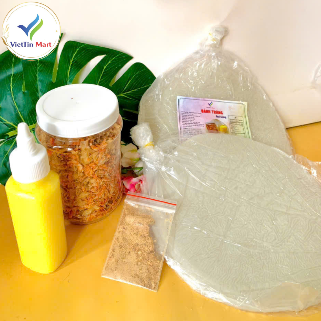 THÔNG TIN SẢN PHẨM Tên sản phẩm: Combo Bánh Tráng Phơi Sương, Bở, Muối Tép Hành Phi Viettin Mart 330g/800g Thành Phần: bánh tráng phơi sương, 1 hũ bơ trứng gà, 1 hũ tóp mỡ